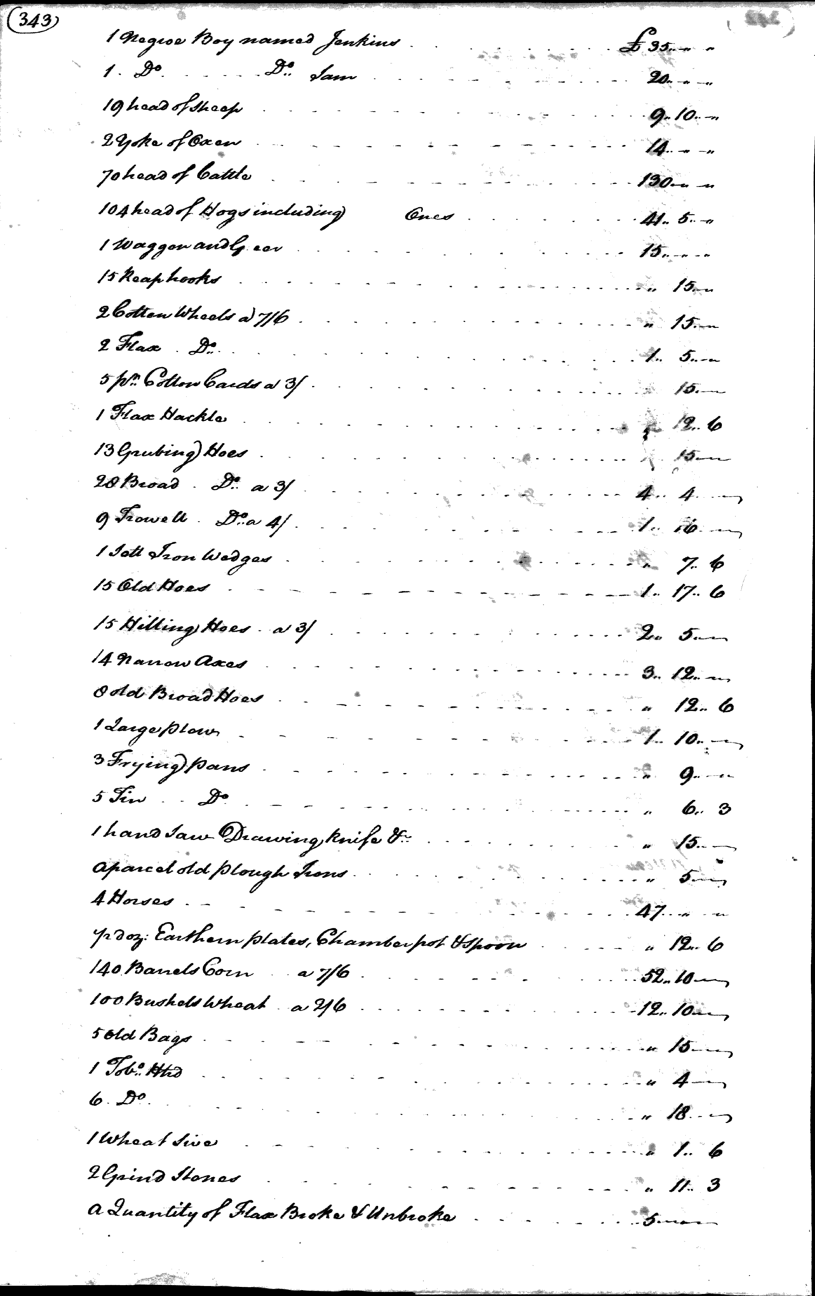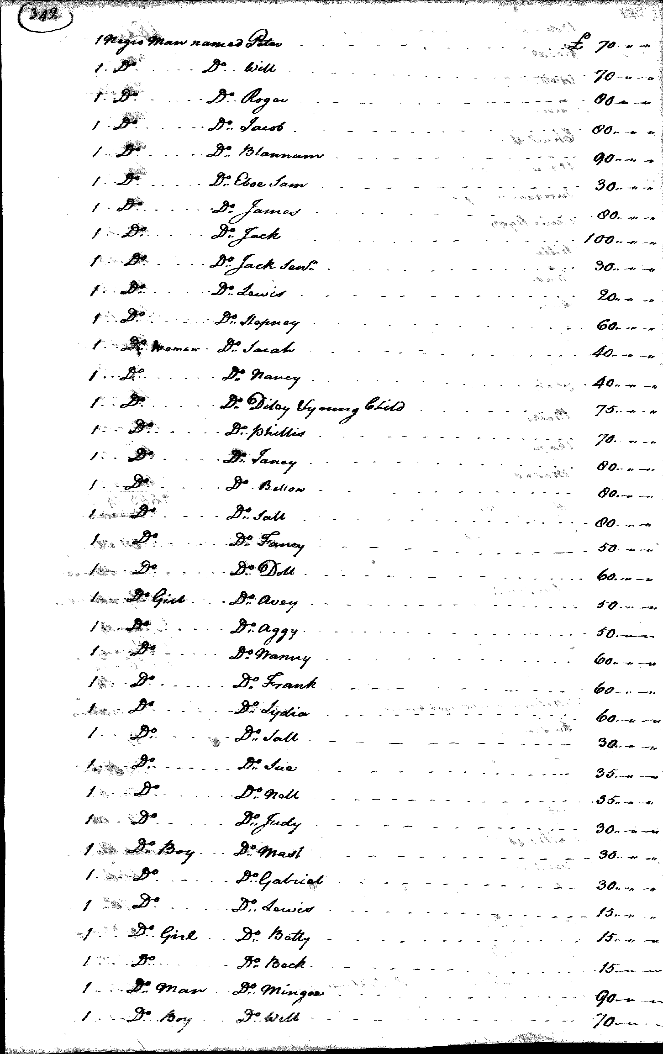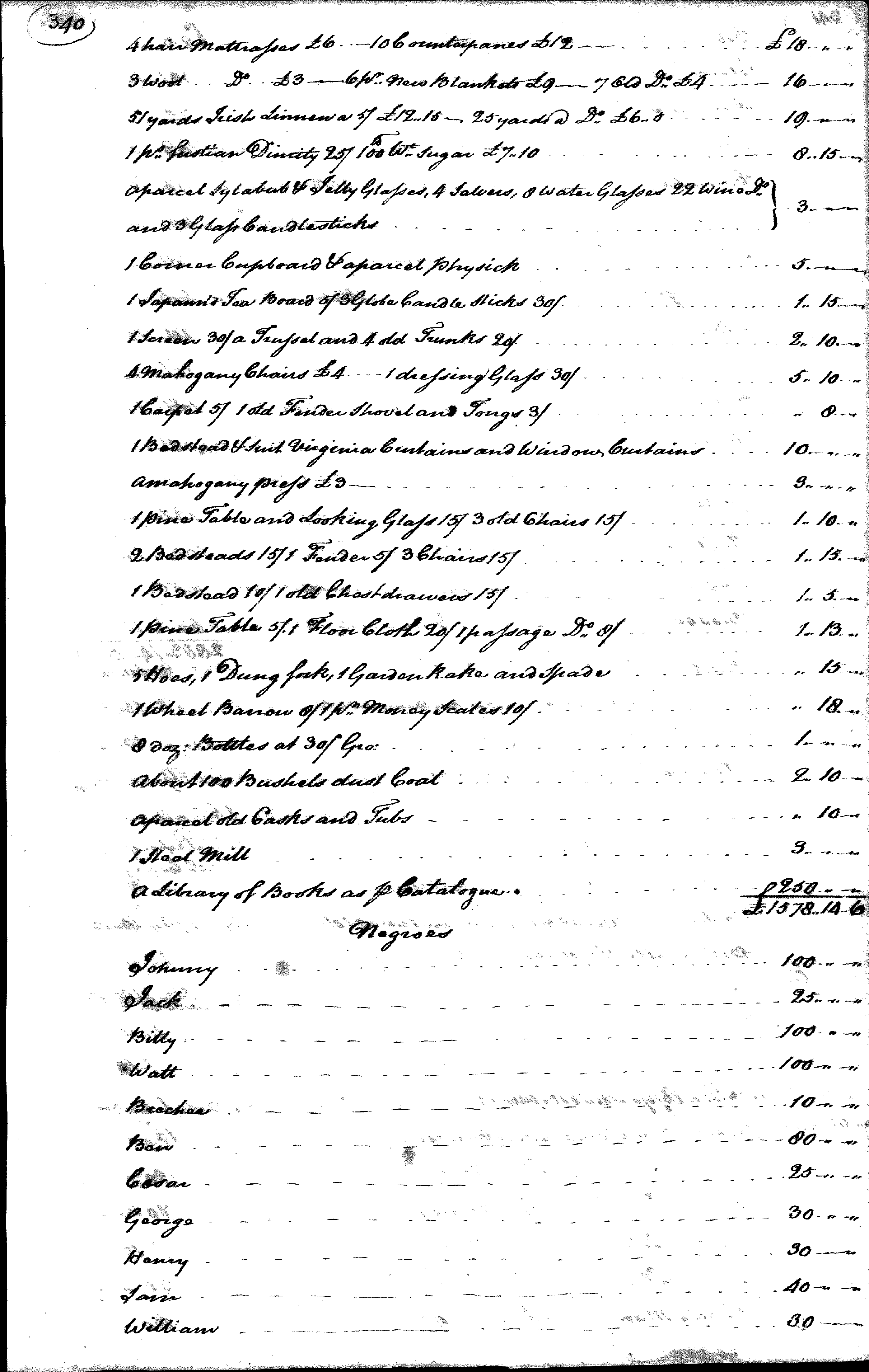 Following Peyton Randolph’s death in 1775, York County, Virginia, officials recorded this inventory of his possessions. The names and values (in pounds) of the enslaved people he owned are recorded on pages four through ten of the inventory. Eve’s name is listed on page five of the inventory, while her son George’s name is listed on page four. Eve and another woman named Betty were assigned values of 100 pounds each, the highest values among the enslaved women recorded in the inventory. These high values suggest that Eve and Betty worked in the Randolph home. Eve’s status may have changed following her attempt to escape from the Randolph family with her son in search of freedom. At least two handwritten copies of this inventory survive. The other copy includes the notation “gone to the enemy” next to the names of Eve and George, referring to when they first ran away from the Randolph family in search of their freedom in late-1775 or early-1776.