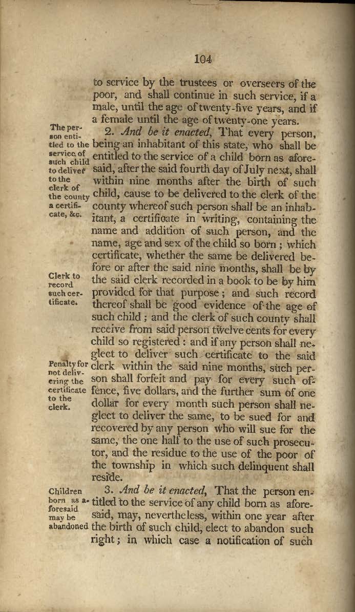 An Act for the Gradual Emancipation of Slavery